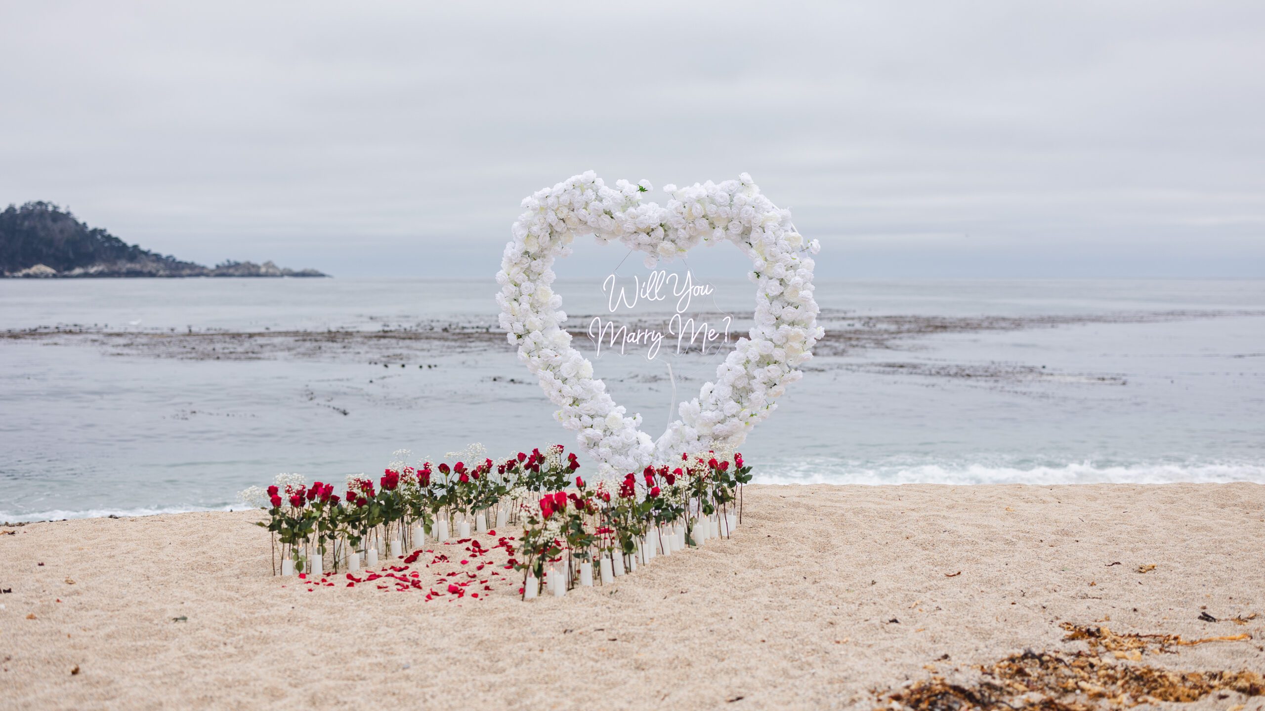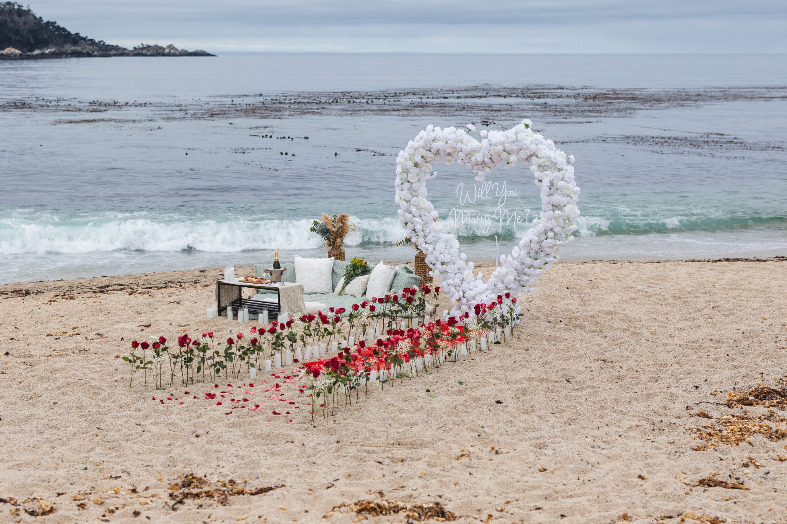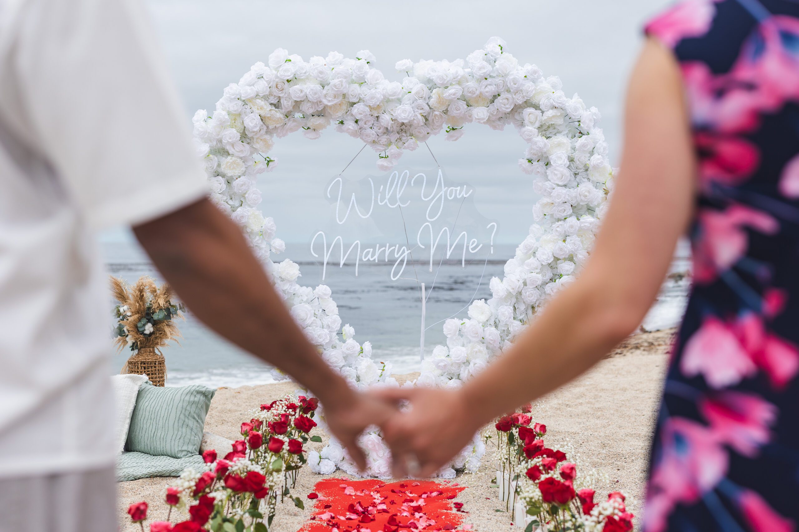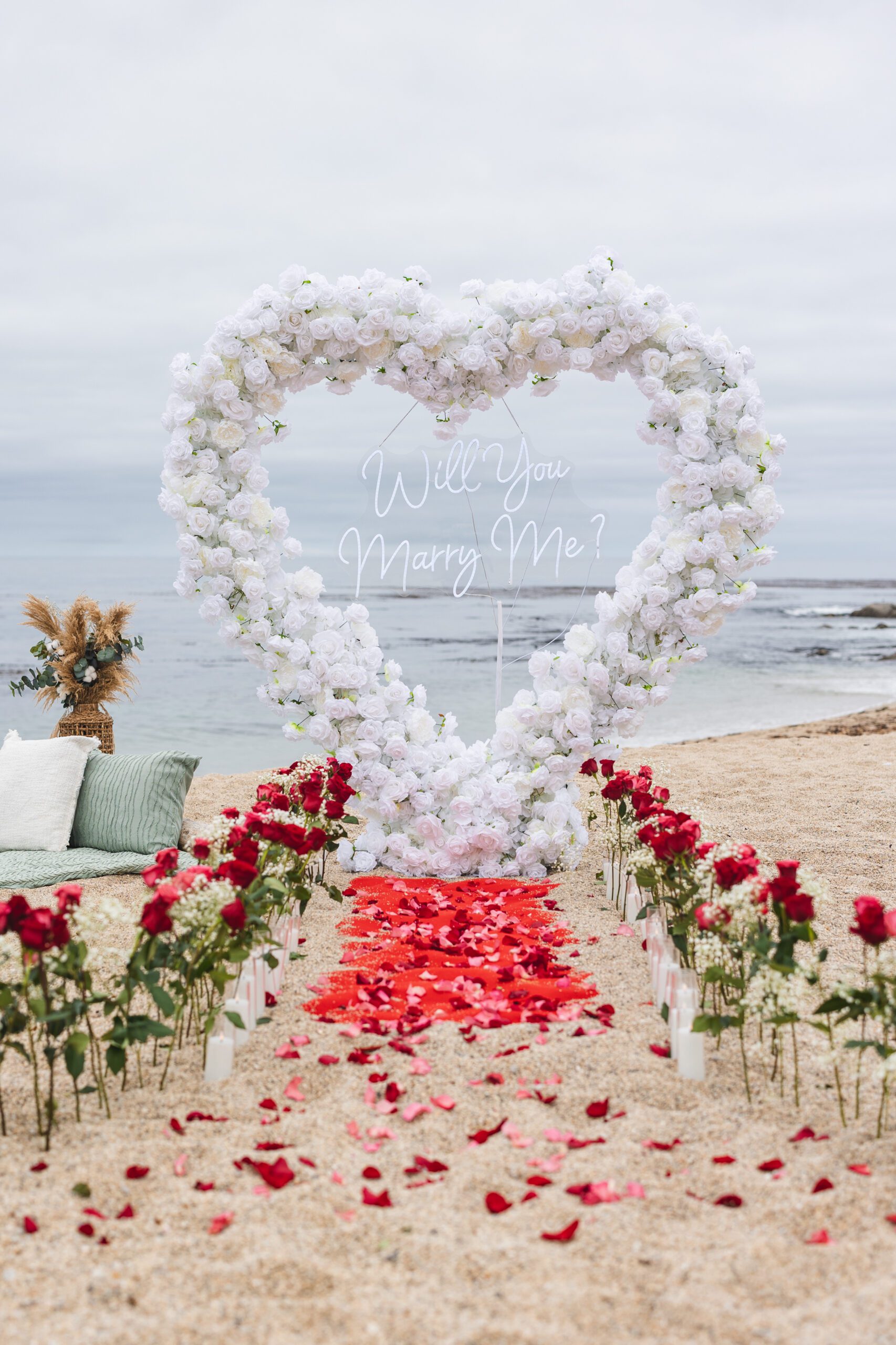 A show-stopping, full-service proposal experience with 1,000+ live roses, 50+ LED candles, and a 45-minute portrait session