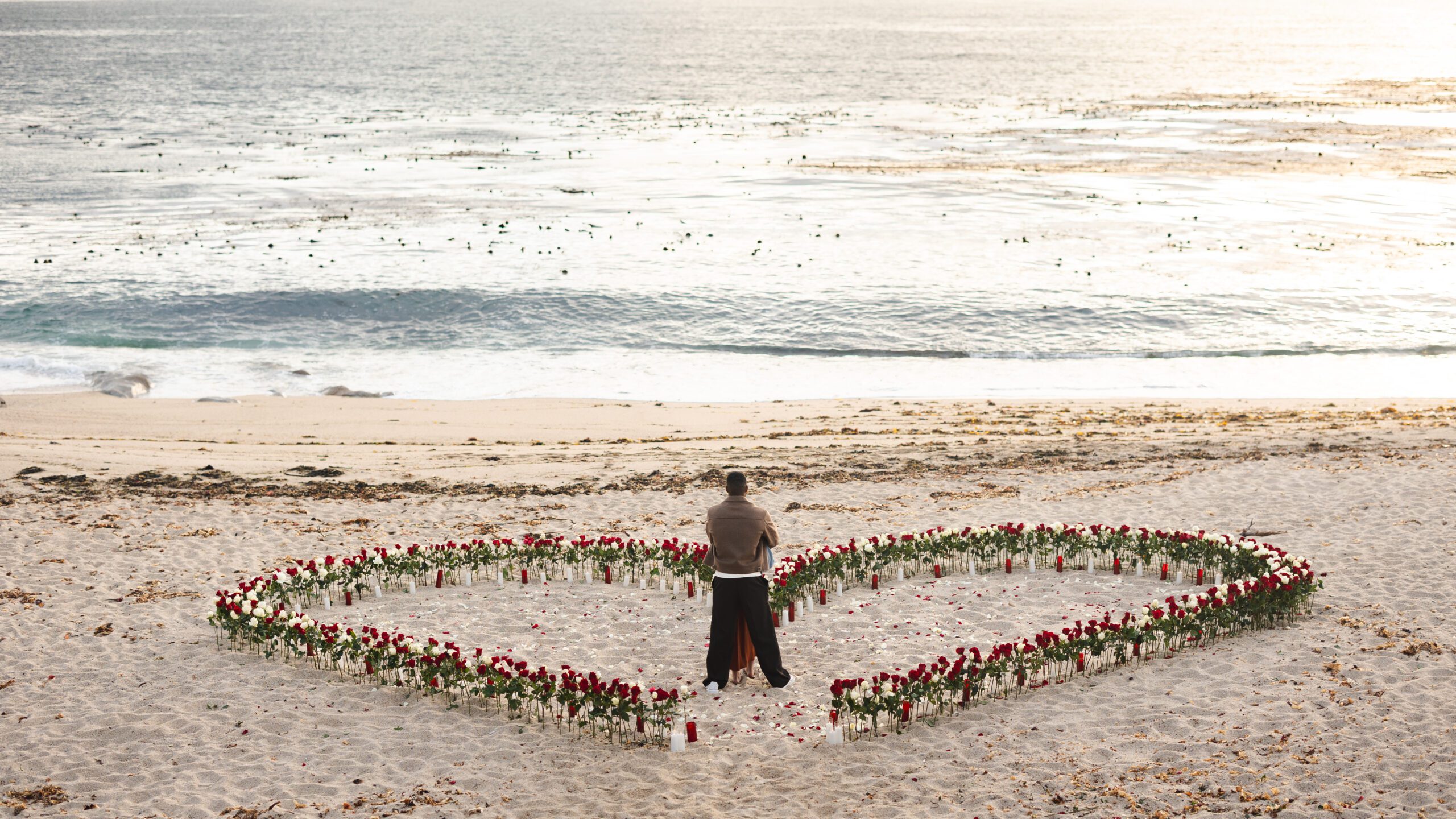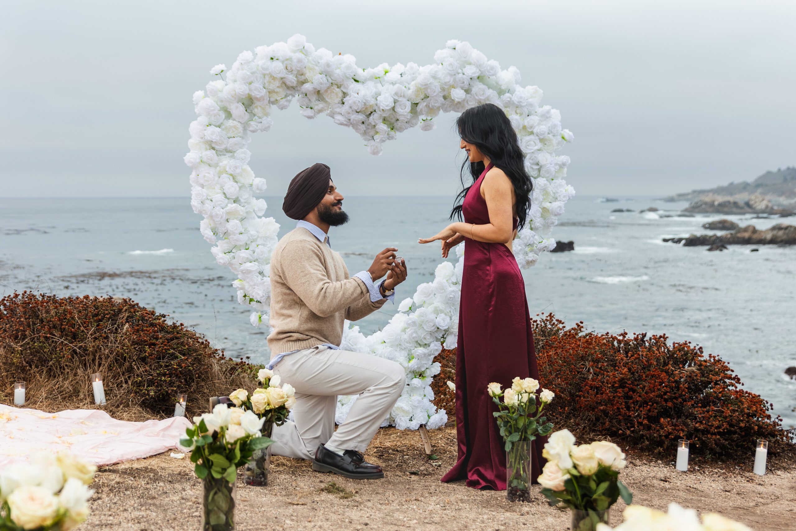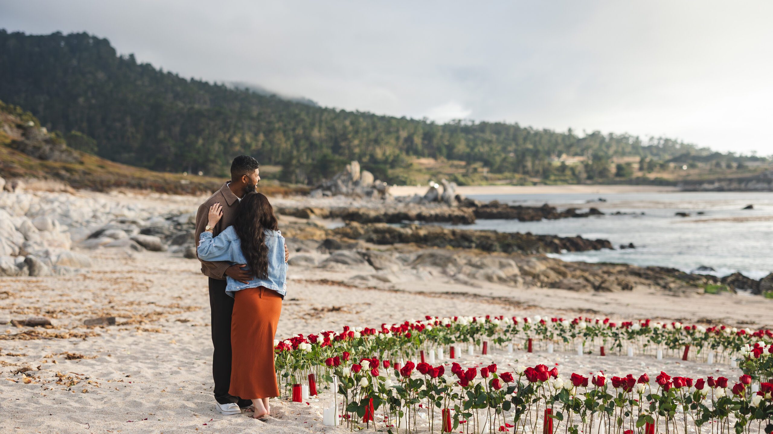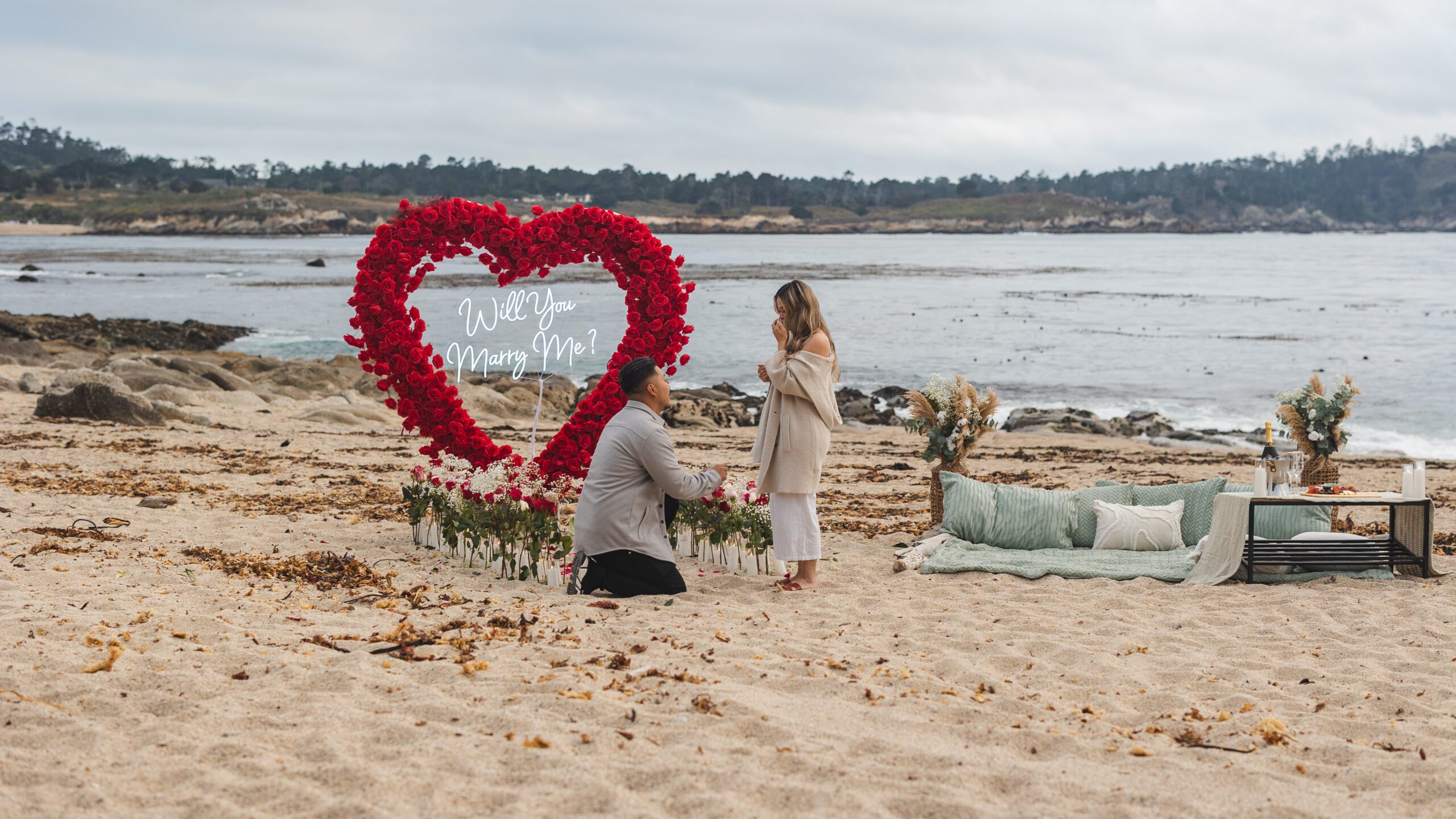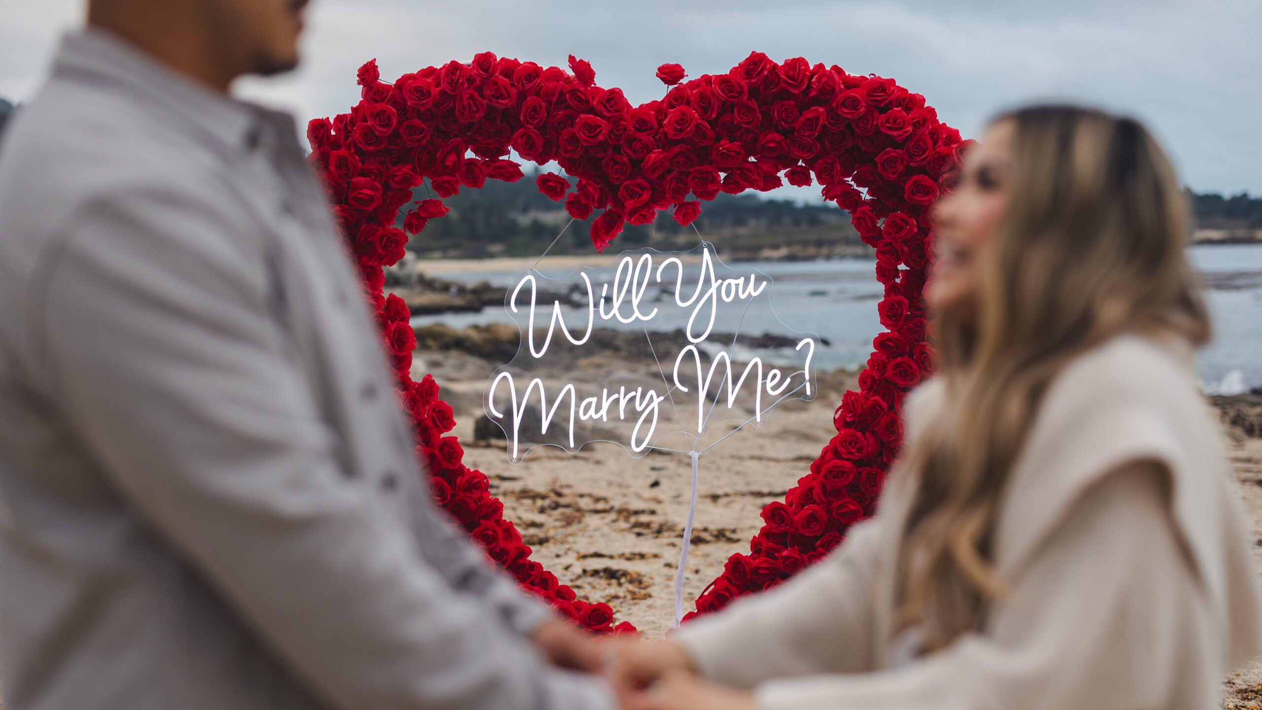 A show-stopping, full-service proposal experience with 1,000+ live roses, 50+ LED candles, and a 45-minute portrait session