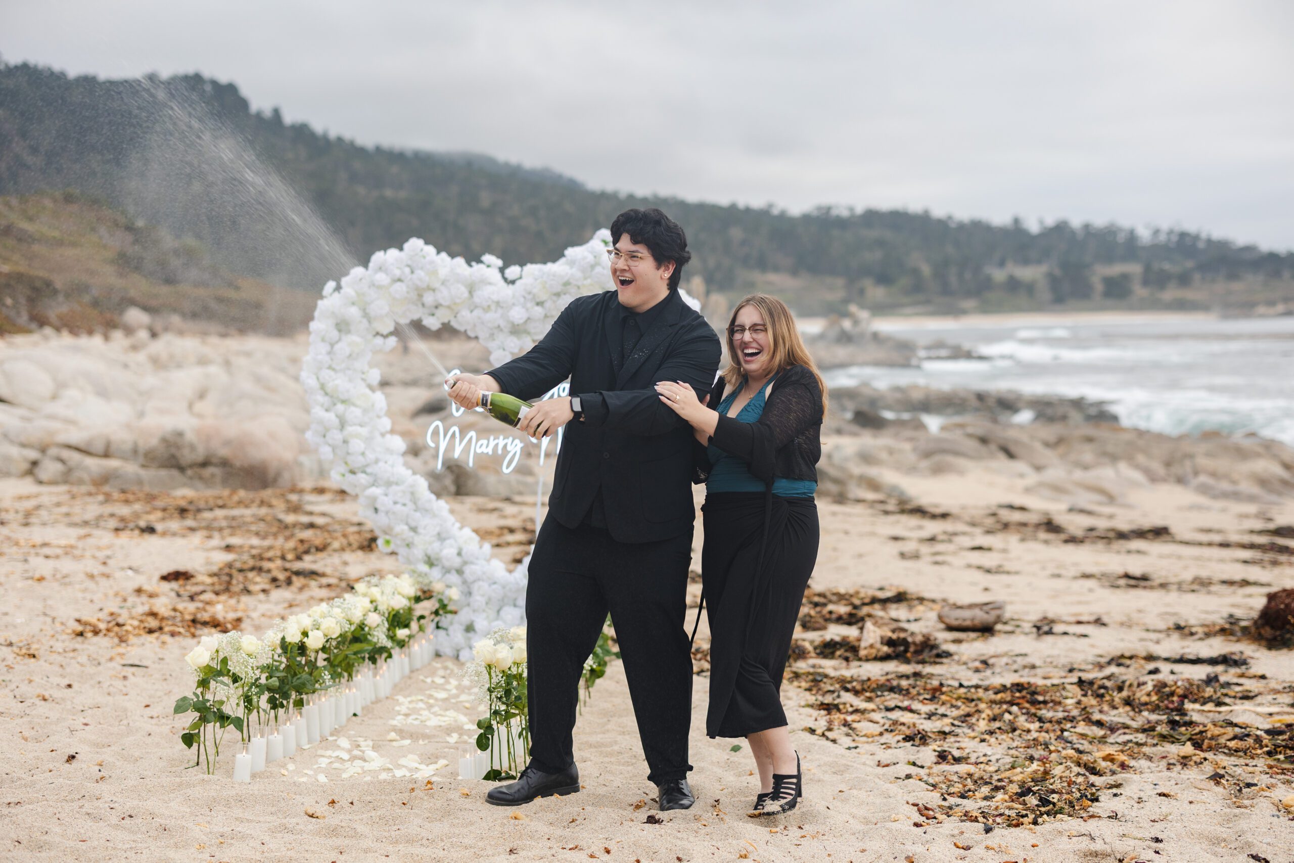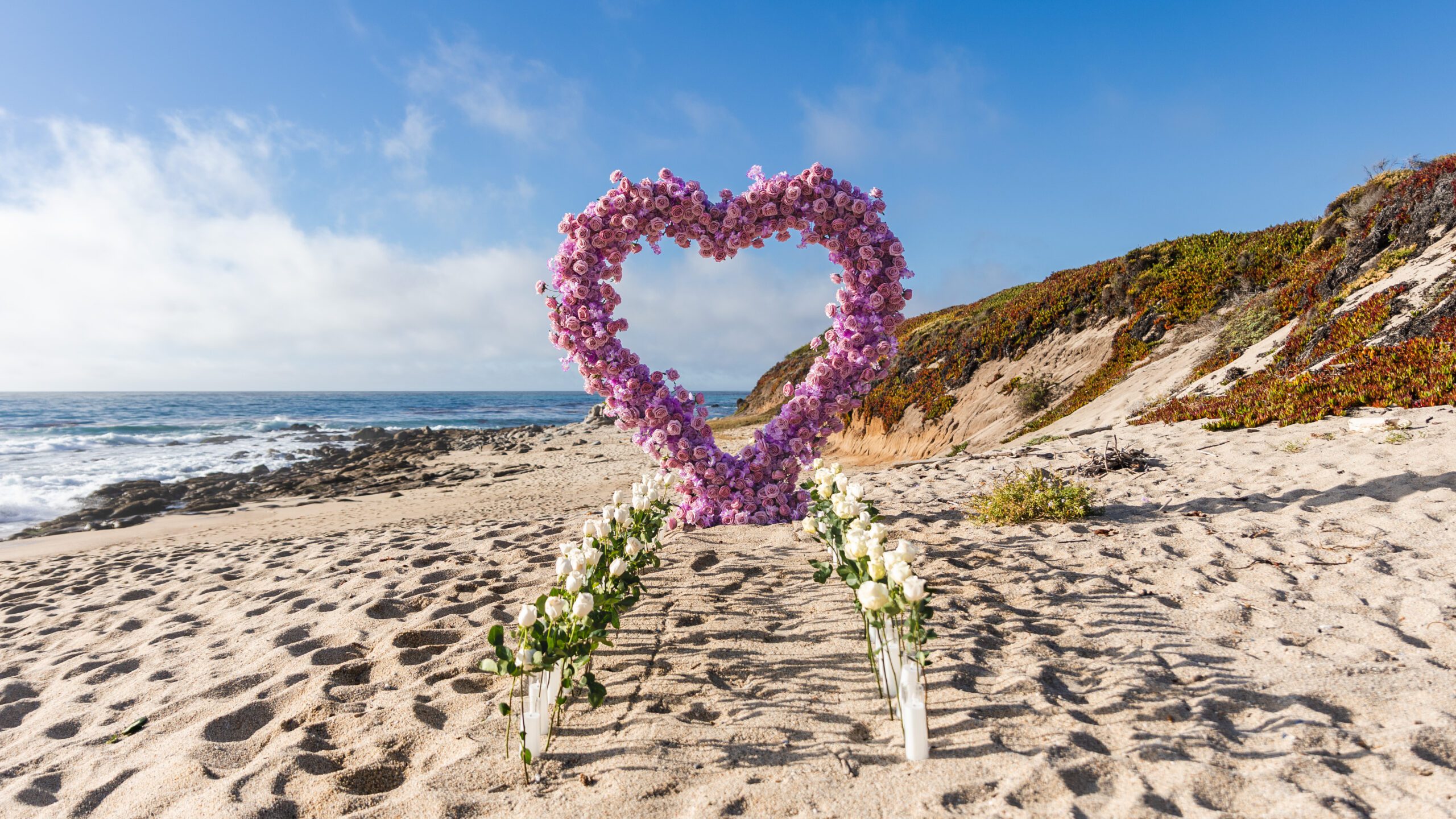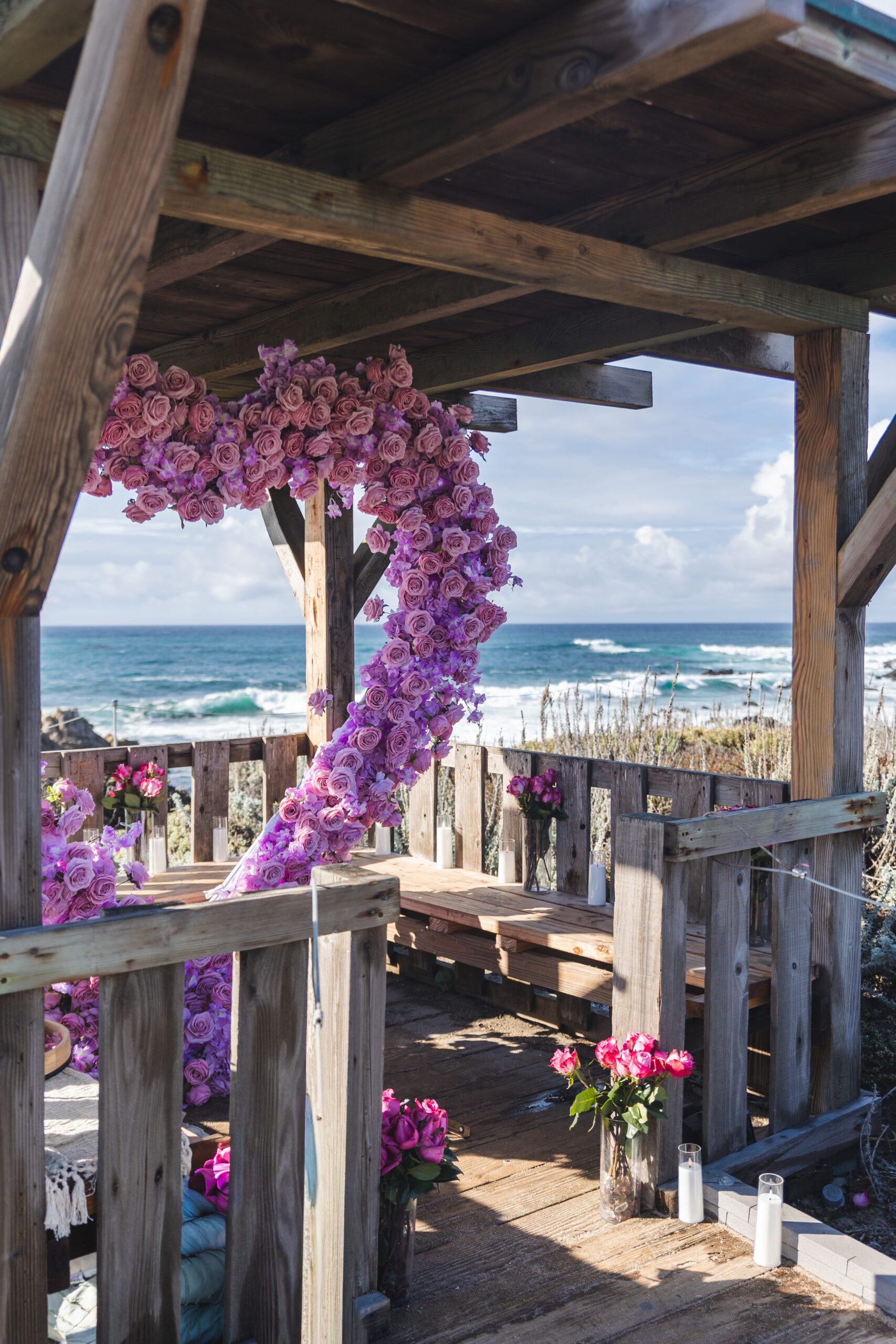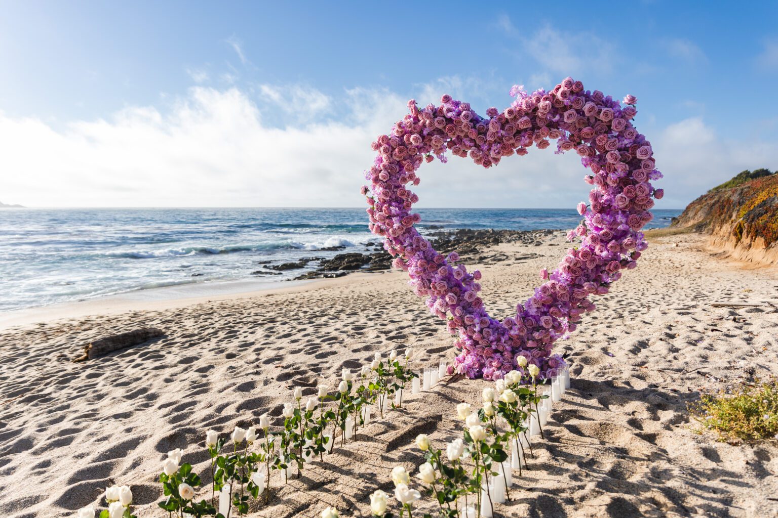 A show-stopping, full-service proposal experience with 1,000+ live roses, 50+ LED candles, and a 45-minute portrait session