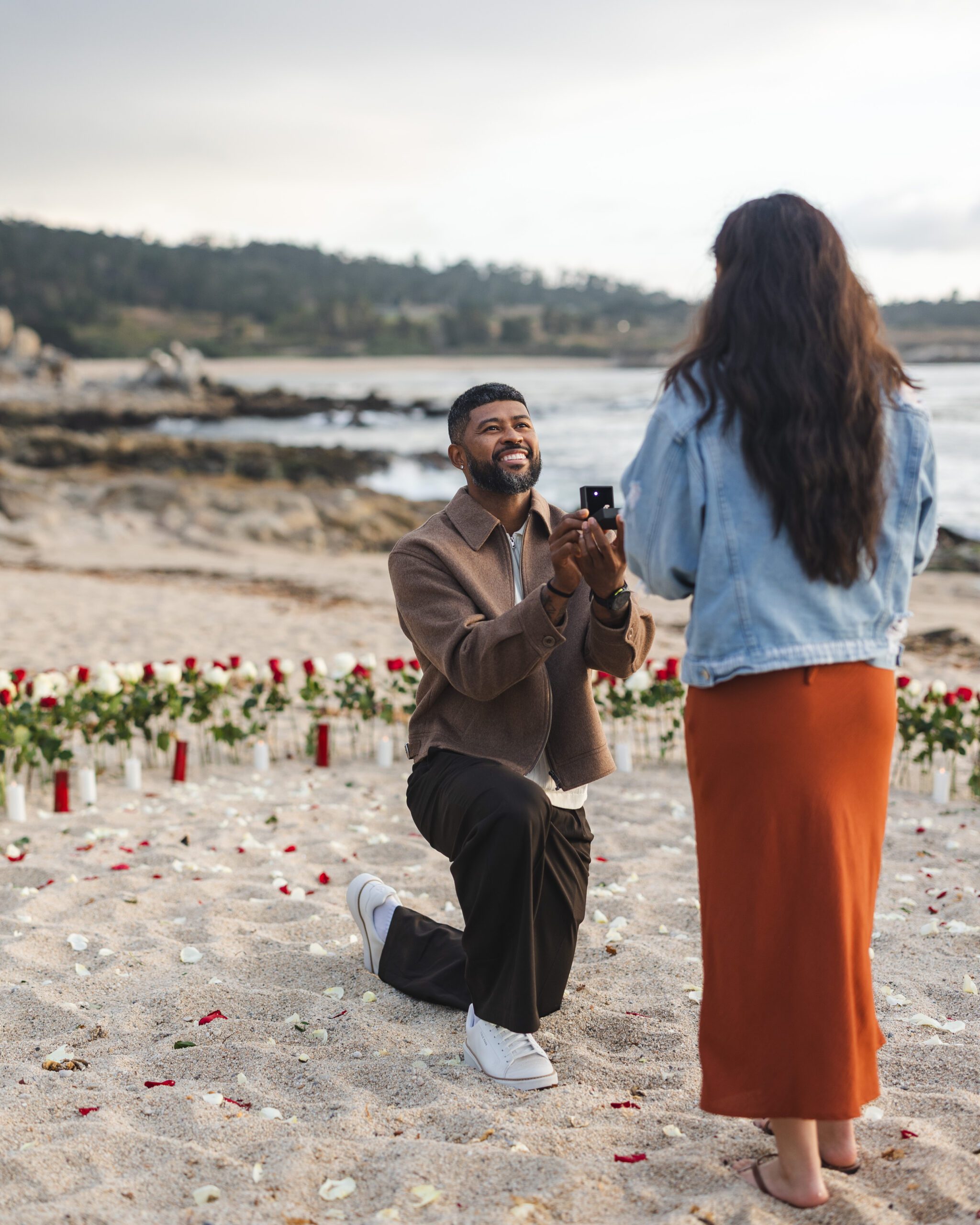A beautifully intimate proposal captured by a professional photographer, with 30-minute couples portraits and 50+ photos