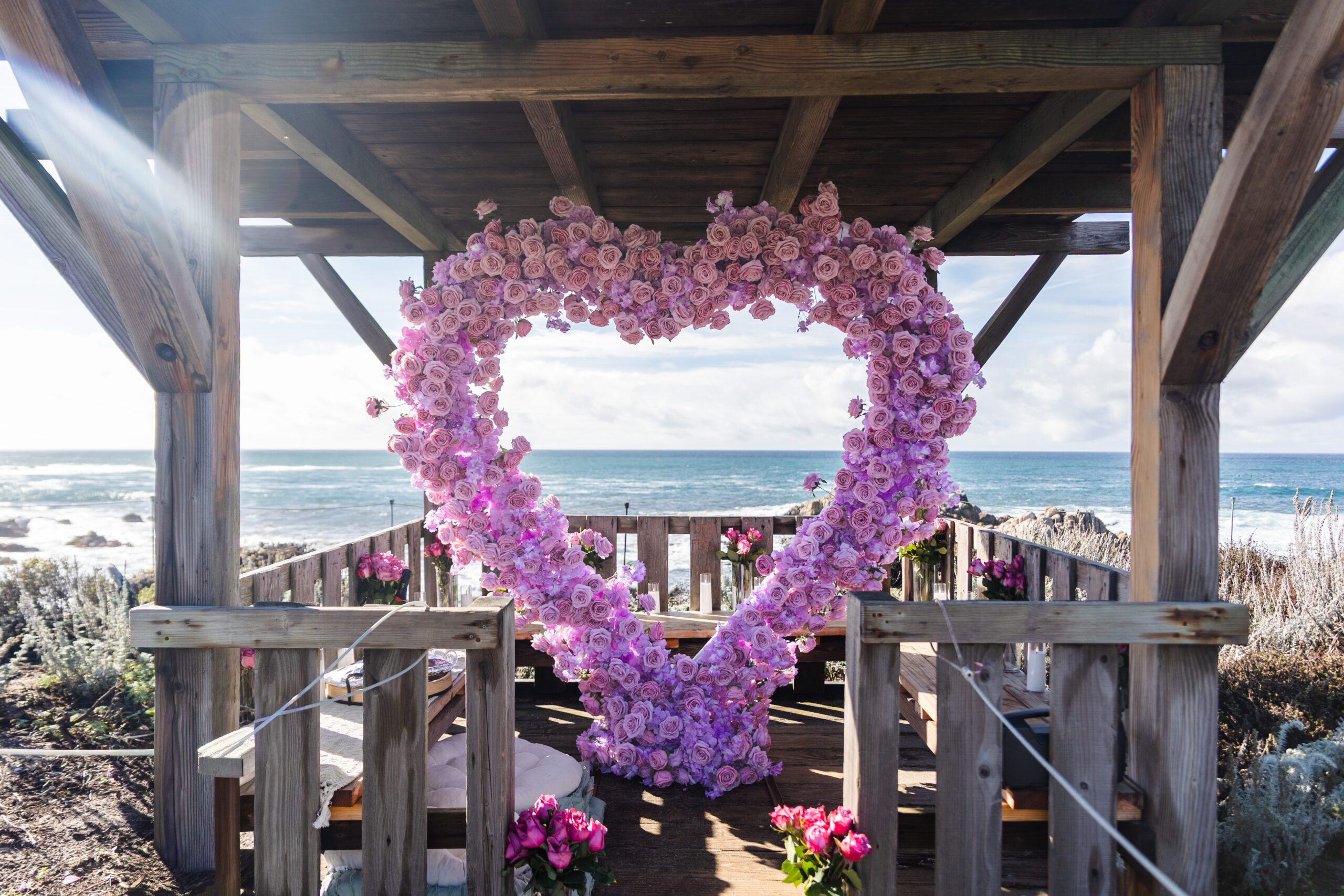 Eight premium floral arrangements placed in a horseshoe design to frame your proposal moment. Elegant, romantic, and thoughtfully styled for a beautiful, timeless “yes.”